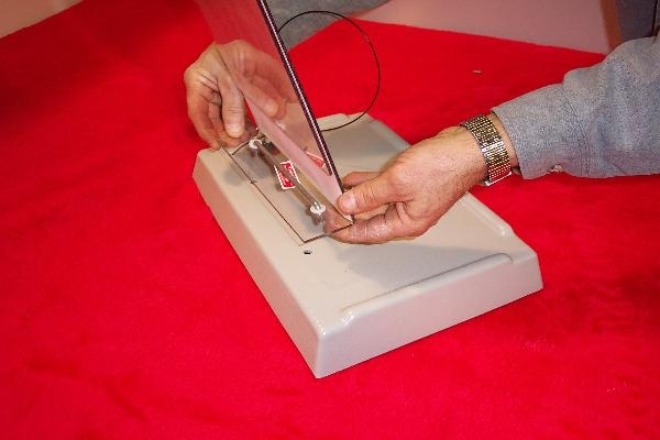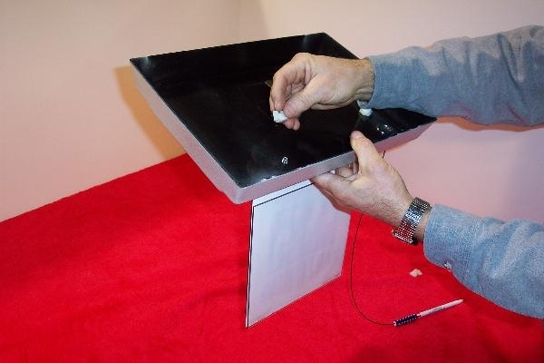 4. Place the key locking table top on top of base unit, after installing billboard to the table top. Click to enlarge image for greater detail.